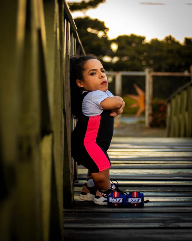 Ela conheceu o halterofilismo paraolímpico há 3 anos, após acompanhar um amigo que é cadeirante numa atividade física. “Quando entrei na sala de treinamento, o professor Felipe Aidar me recebeu com um sorriso enorme e me perguntou se eu iria treinar com eles. Eu respondi que não, por acreditar que aquilo não era pra mim. Ele, então, me mostrou vídeos de pessoas com nanismo que são campeões mundiais e me convenceu a fazer o teste. Todos ficaram surpresos quando me viram levantar uma barra de 20 quilos”, lembra a paratleta.