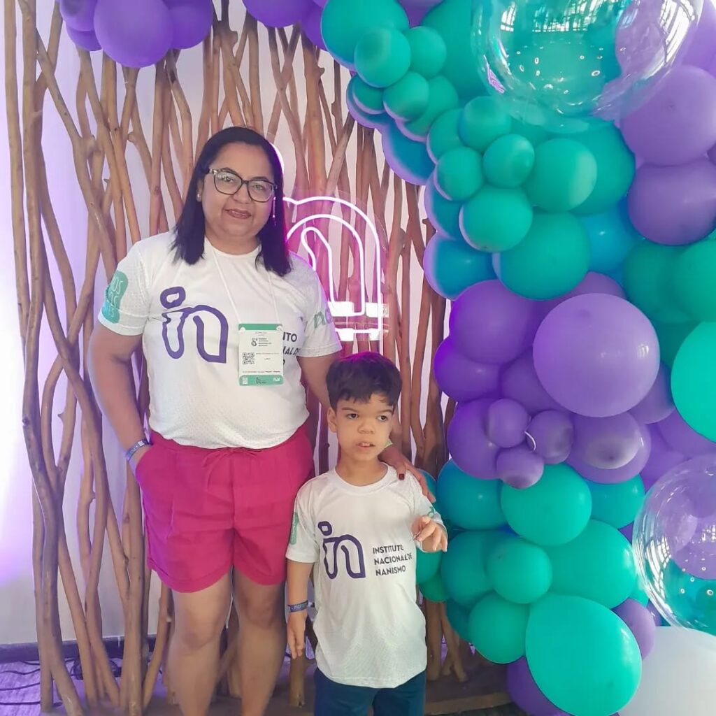 Maria conta que descobriu sobre o diagnóstico de Dudu no 8º mês de gestação e que foi um susto, assim como na maioria das famílias. Eduardo tem acondroplasia e em 2023 a família participou pela primeira vez de um encontro do INN. No mês de outubro, mais de 200 pessoas estiveram presentes na 6ª edição do evento que foi realizada no Nordeste do país. “Foi uma experiência fantástica para nós pais e para o Dudu. Ele se identificou com tantos outros lá e agora pergunta quando vai ser o próximo encontro”, completa a mãe.