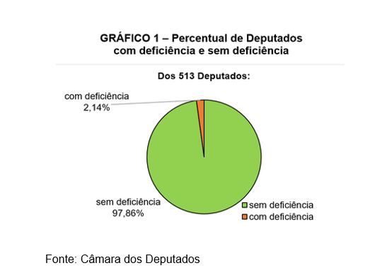 Dos candidatos com deficiência, a maioria (53,69%) tinha uma deficiência física. Em seguida, deficiência visual (23,58%) e auditiva (11,58%), outras deficiências (8,42%) e autismo (2,74%). Para a Câmara dos Deputados, concorreram 161 pessoas com deficiência. Ou seja, 35% dos candidatos com deficiência disputam uma vaga na Câmara. Dos 513 deputados, 11 (2,14%) foram eleitos deputados com deficiência. (Dados foram coletados no decorrer do ano 2022).