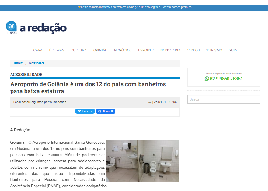 Aeroporto de Goiânia é um dos 12 do país com banheiros para baixa estatura