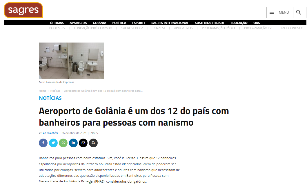 Aeroporto de Goiânia é um dos 12 do país com banheiros para pessoas com nanismo