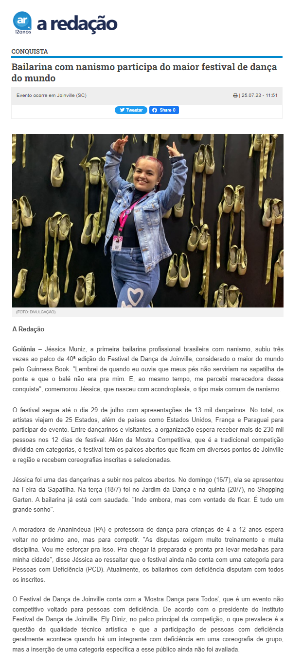 Bailarina com nanismo participa do maior festival de dança do mundo