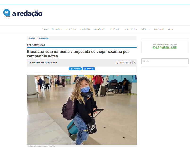 Brasileira com nanismo é impedida de viajar sozinha por companhia aérea