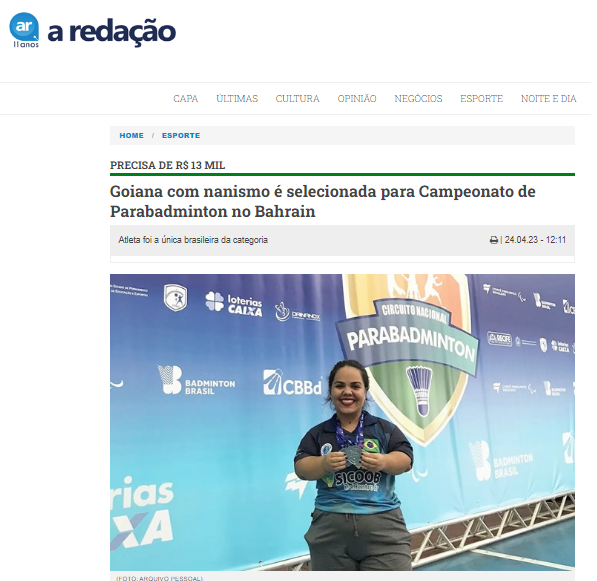 Goiana com nanismo é selecionada para Campeonato de Parabadminton no Bahrain