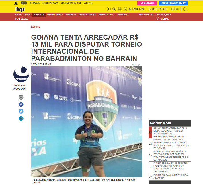 Goiana tenta arrecadar R$ 13 mil para disputar torneio internacional de Parabadminton no Bahrain