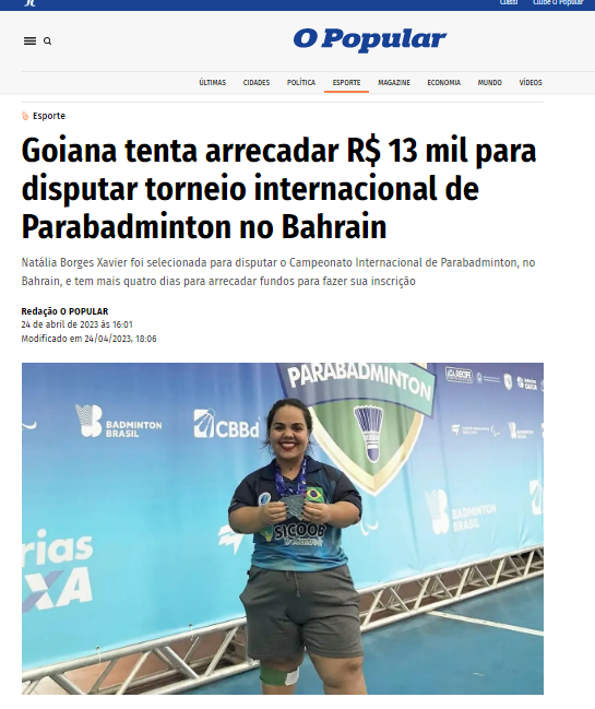 Goiana tenta arrecadar R$ 13 mil para disputar torneio internacional de Parabadminton no Bahrain