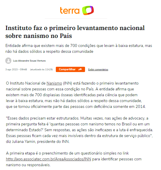 Instituto faz o primeiro levantamento nacional sobre nanismo no País