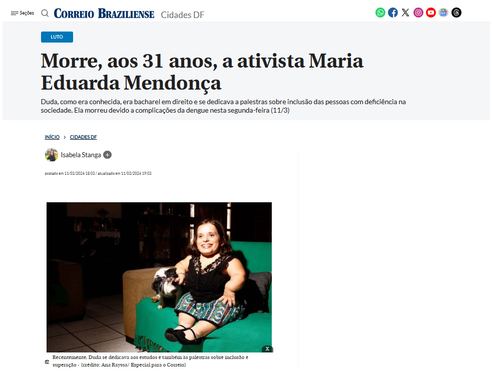 Morre, aos 31 anos, a ativista Maria Eduarda Mendonça