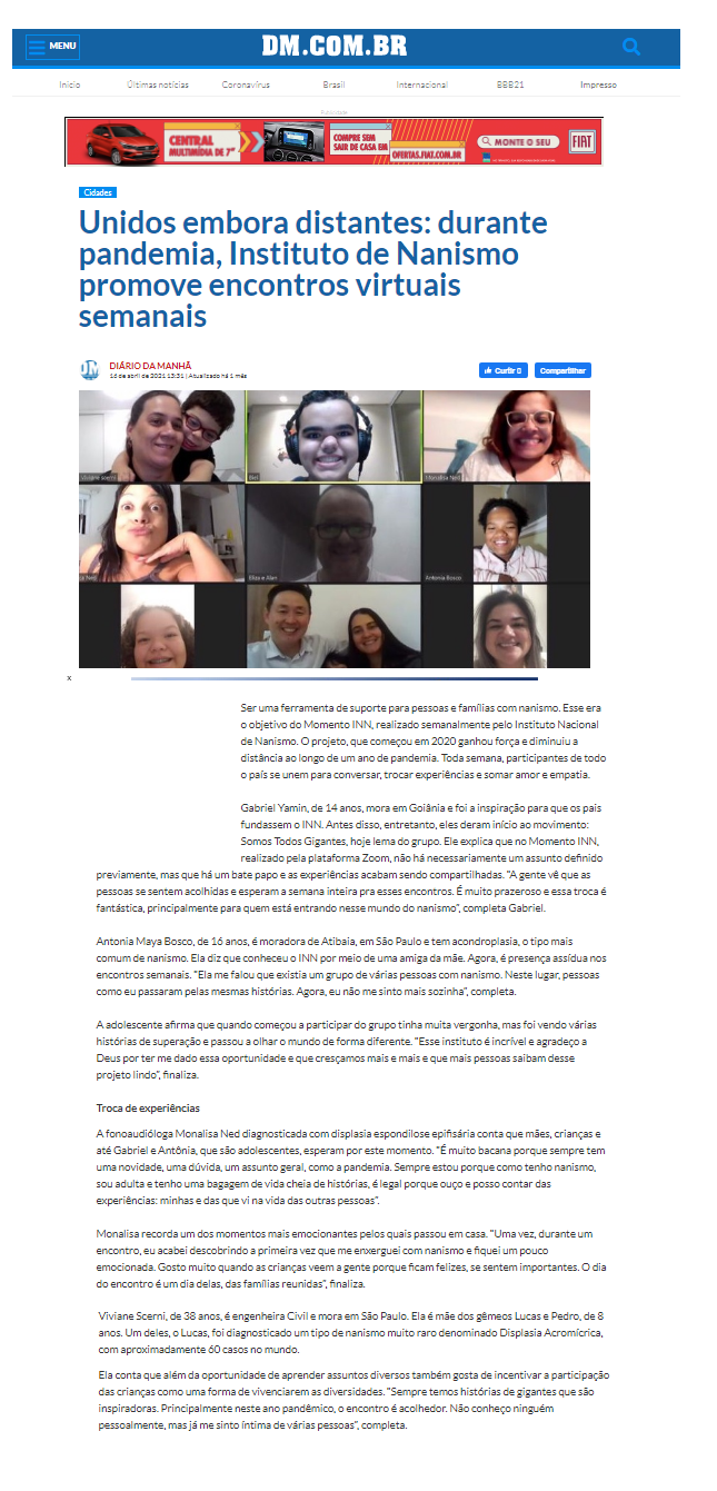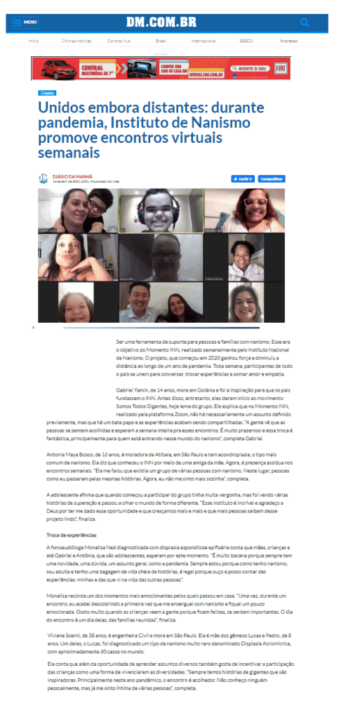 Unidos embora distantes: durante pandemia, Instituto de Nanismo promove encontros virtuais semanais