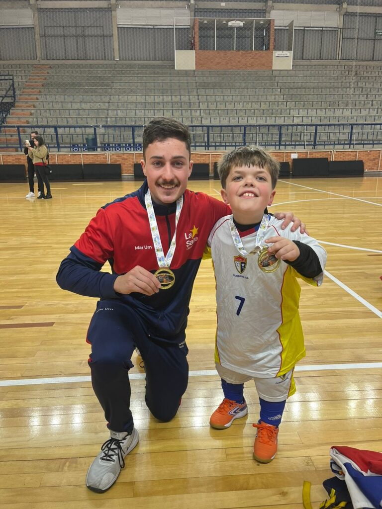 Um olhar técnico e humano plantou mais uma semente no futuro de uma criança e permitiu a união de um time que levou pra casa medalha de ouro. Bernardo Berti Hoffmann, de 10 anos, do colégio La Salle Caxias, em Caxias do Sul, contribuiu para que o time de futsal conquistasse o primeiro lugar nos jogos escolares 2024, na categoria mirim masculino (sub 12). Bernardo, que tem acondroplasia, o tipo mais comum de nanismo, foi a única criança com deficiência convocada para participar da competição, que é promovida pela Secretaria de Esportes da Caxias do Sul.
