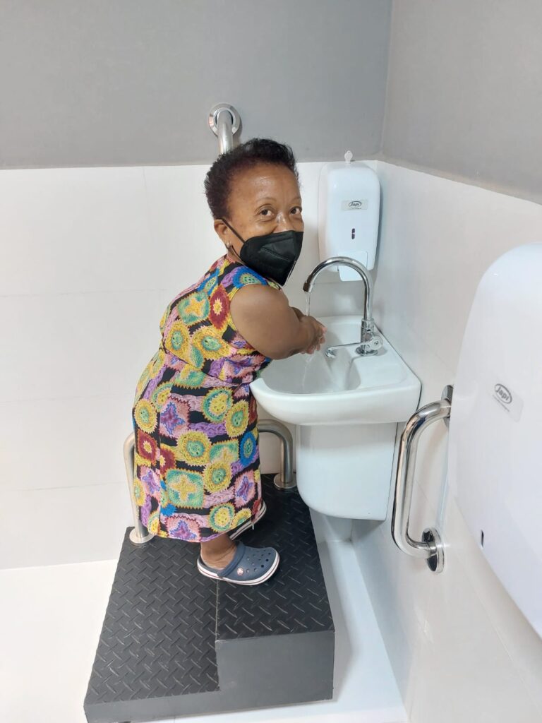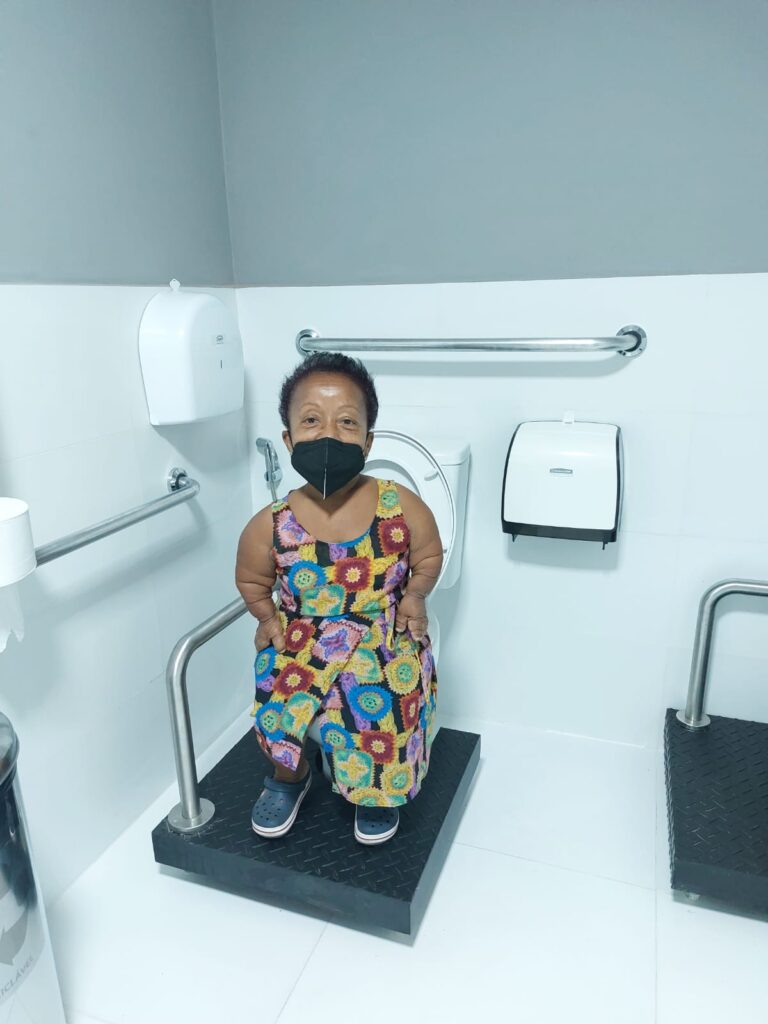 “Entre as minhas maiores dificuldades estão os ônibus e o os caixas eletrônicos. É horrível para mim subir aqueles degraus. O caixa eletrônico é um dos mais gritantes. Eu nunca usei um caixa eletrônico porque não tenho acesso, não alcanço. A minha casa é toda adaptada, mas onde eu vou, eu sinto as maiores dificuldades. O banheiro, principalmente. Eu passo o dia todo na rua e uma hora sinto vontade, mas sequer alcanço a maçaneta”, acrescenta.