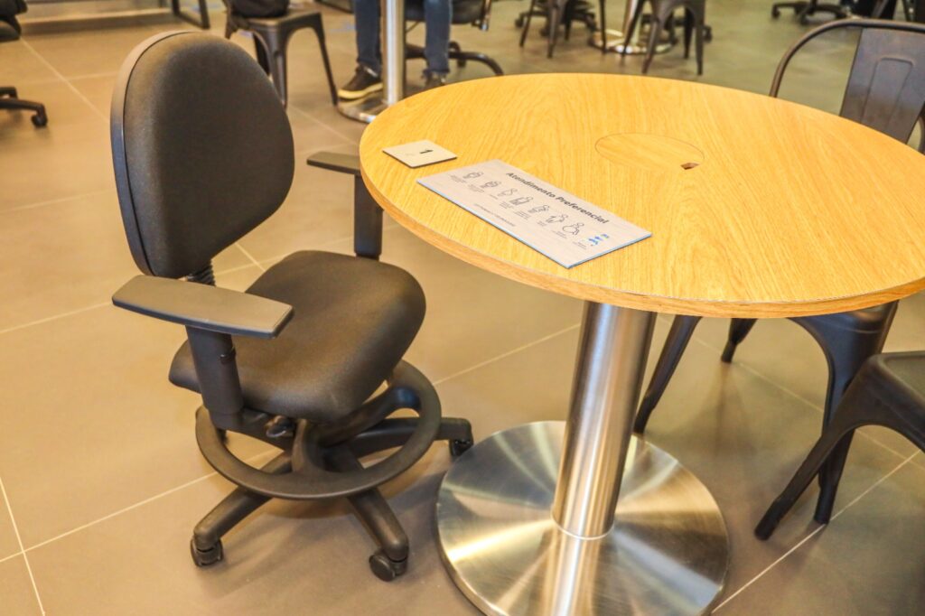 Ainda pensando em inclusão, a Biomob desenvolveu, para pessoas cegas, uma plataforma capaz de disponibilizar, via QR Code e tag NFC, a leitura e audiodescrição do mapa tátil da loja, e de aparelhos e acessórios expostos na mesa de degustação e no espaço casa conectada. Também está disponível no local um exemplar do Código de Defesa do Consumidor em braile.
