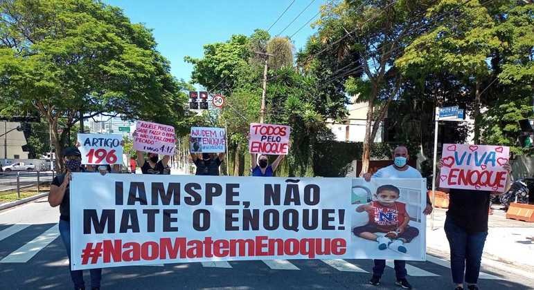 O Iamsp não possui a especialidade para acompanhar Enoque, mas poderia encaminhá-lo para os hospitais Menino Jesus e Sabará. “Com muita luta na Justiça, o Iamsp foi condenado a enviar meu filho para o Hospital Sabará. Mesmo com bloqueio financeiro e multa, eles não cumprem a decisão”, relata Arnoni sobre a liminar conquistada há quatro meses, mas que ainda não foi cumprida.