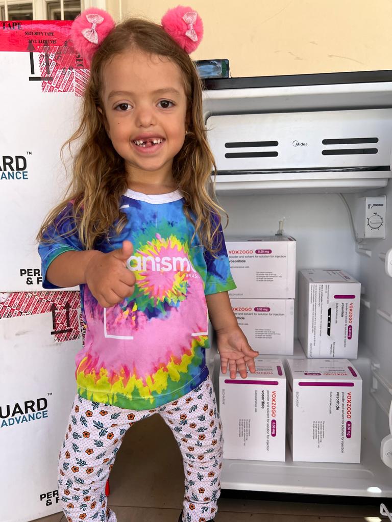 Hanna, de 3 anos, mora em Itanagra, na Bahia, e recebeu o Voxzogo em janeiro de 2023. Apesar de ainda não ser possível notar as diferenças físicas, a mãe Tatiane Barbosa dos Santos diz que a sensação é inexplicável. “Estamos vendo o cuidado de Deus em cada detalhe e o cumprimento das promessas dele. Hoje sei que minha filha pode ter melhoras na qualidade de vida não apenas em relação à estatura, mas em consequências que o nanismo traz. Só tenho a agradecer”, completa.