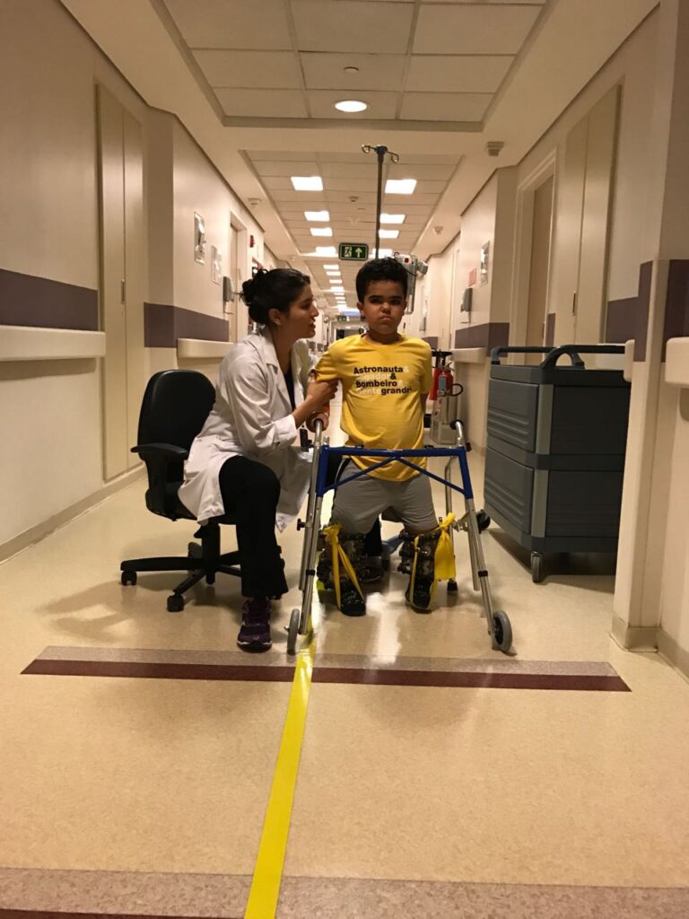 Desde a retirada das gazes, até os exercícios e os primeiros passos foram conquistas diárias. Gabriel encarou tudo com muita coragem como podemos ver nos primeiros momentos deste vídeo.