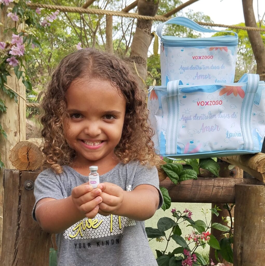 Maria Fernanda Monteiro, de 4 anos, foi a primeira criança a receber a Voxzogo no Brasil por meio da Justiça. “Como tratava-se de um medicamento novo no Brasil, além de dois laudos principais bastante completos da neurologista e geneticista, juntamos também laudos de outras sete especialidades médicas. Depois de 13 dias, recebemos a liminar”, explica a mãe de Maria Fernanda, Neila Monteiro. Já são 2 anos de medicação, que permitiu à criança ganhar 15 centímetros de estatura, envergadura, melhora do tônus muscular e no equilíbrio devido à maior proporcionalidade de tronco e membros. Maria tem acondroplasia.